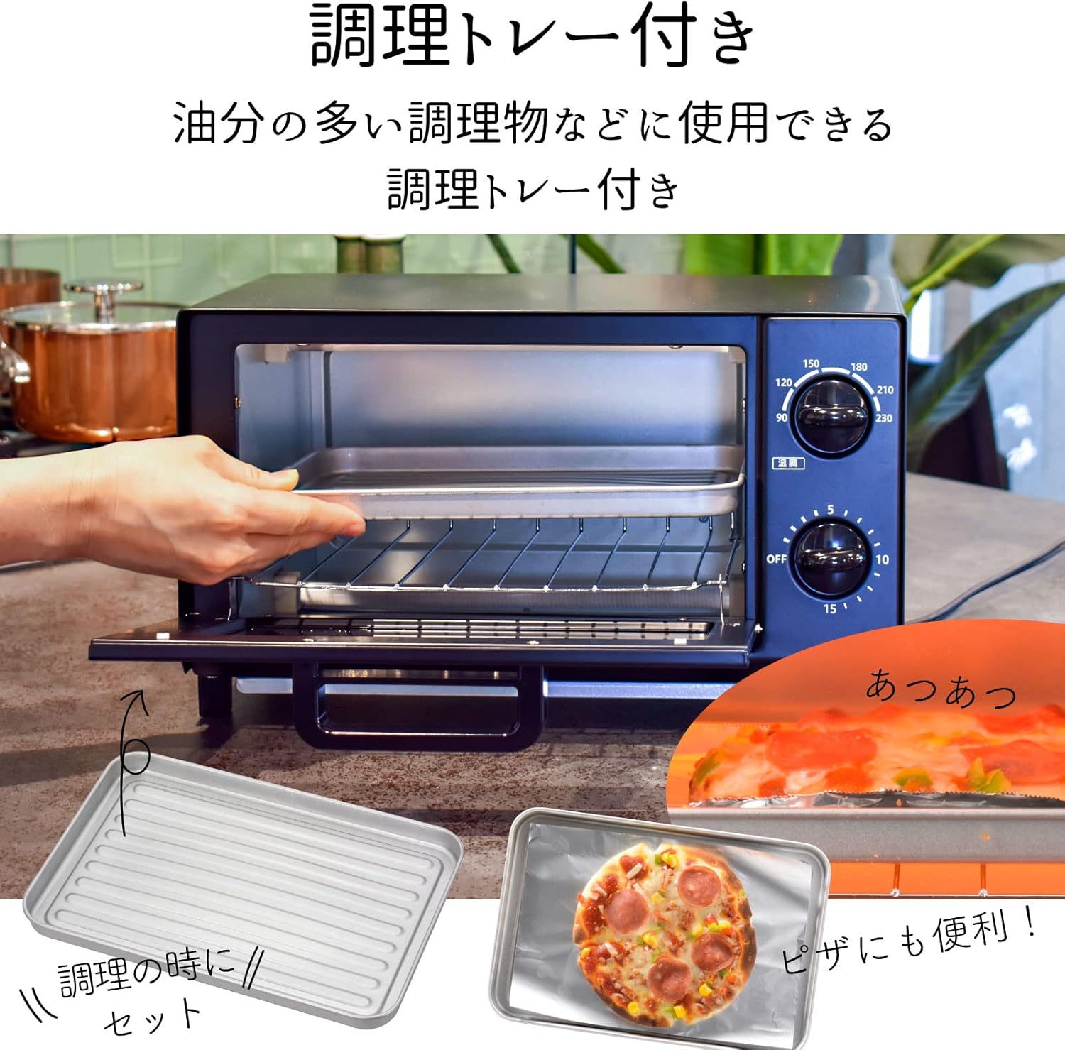 1000Wハイパワー/ 温度設定切替/調理トレー付き/タイマー設定/スライド式のくず受皿