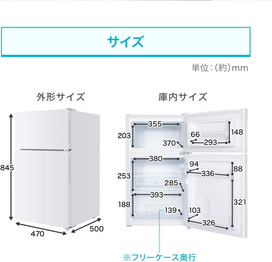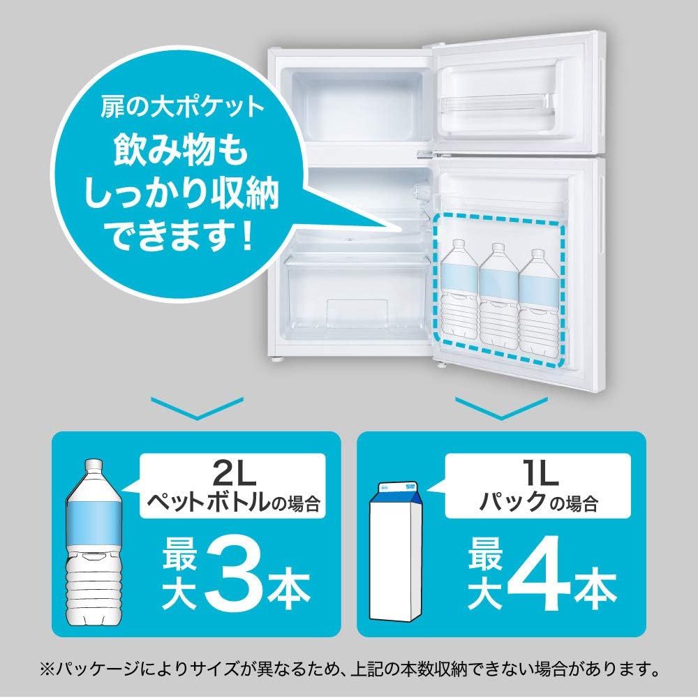 冷蔵庫/87L/コンパクト/大容量/右開き/2ドア/幅47cm/一人暮らし/冷凍室上側/温度調節/耐熱板/省スペース