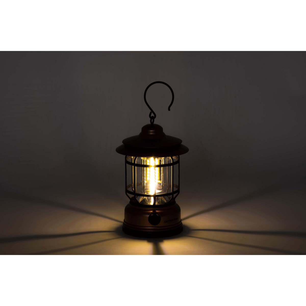 無段階調光でバッテリータイプのCOBランタン。 本体のフックを使用して吊り下げても使用可能。