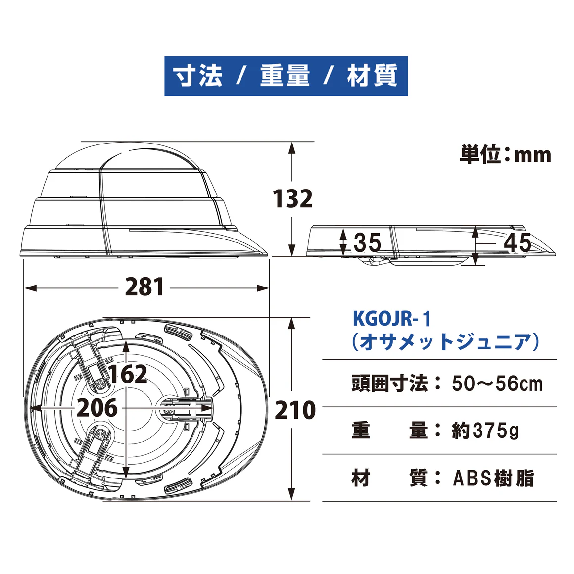 ●目安:小・中学生(頭位50~56cm)