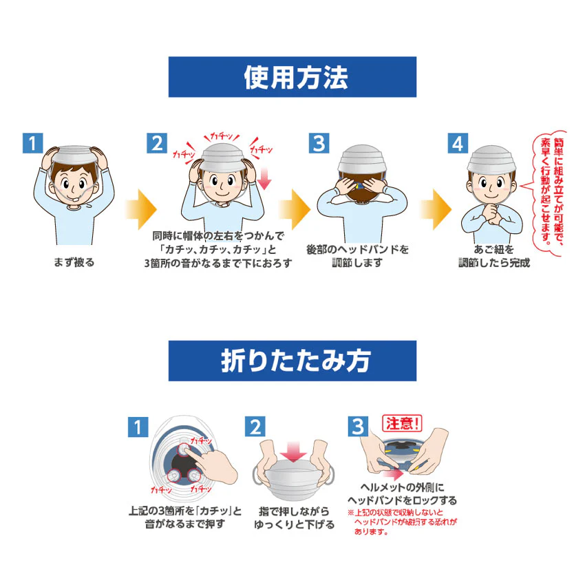 折りたたみ防災用ヘルメットの子ども・女性用サイズ(頭位50~56cm)