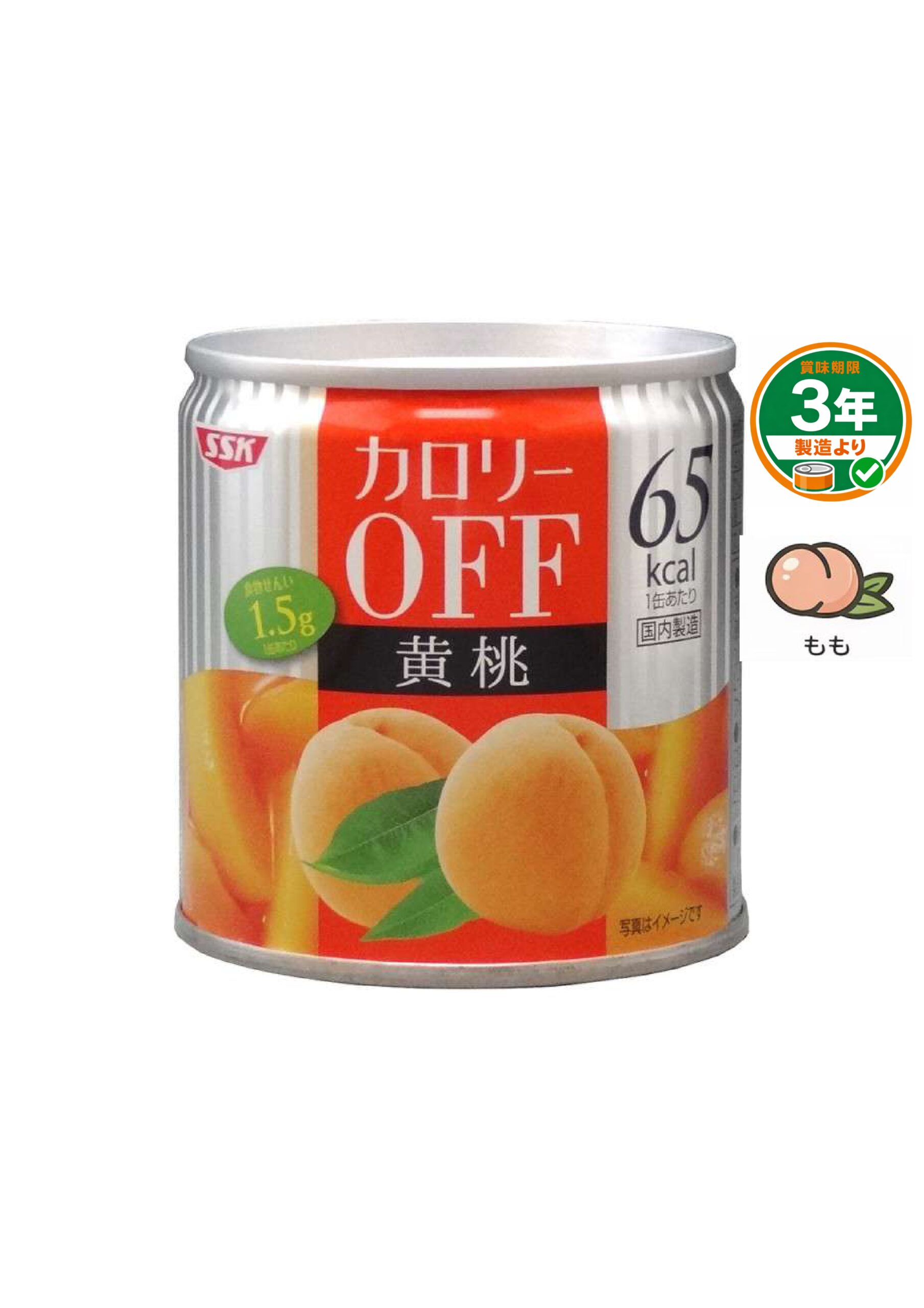 カロリーオフの黄桃缶詰です。便利な食べ切りサイズ。カロリーオフなのに美味しい、すっきりした甘さに仕上げました。1缶あたり65kcal。不足しがちな食物繊維は1缶あたり1.5g。ヨーグルトのトッピングとしておすすめです。冷やしてそのままでも美味しく召し上がれます。