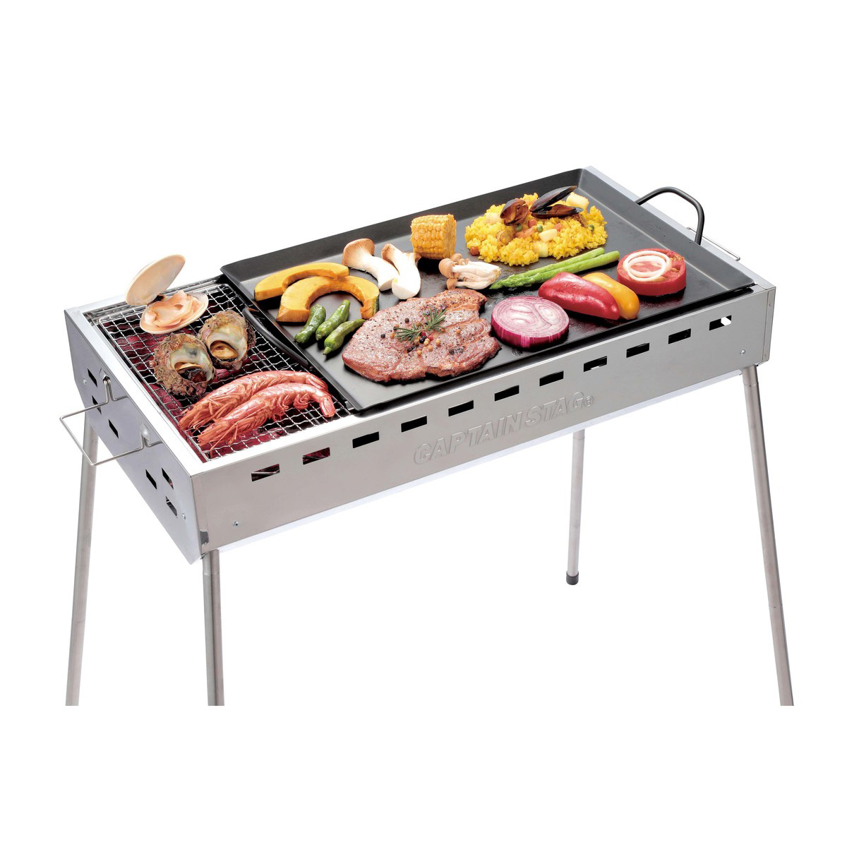 BBQグリドルと串焼き&焼き過ぎ防止アミ(別売)が使用可能。