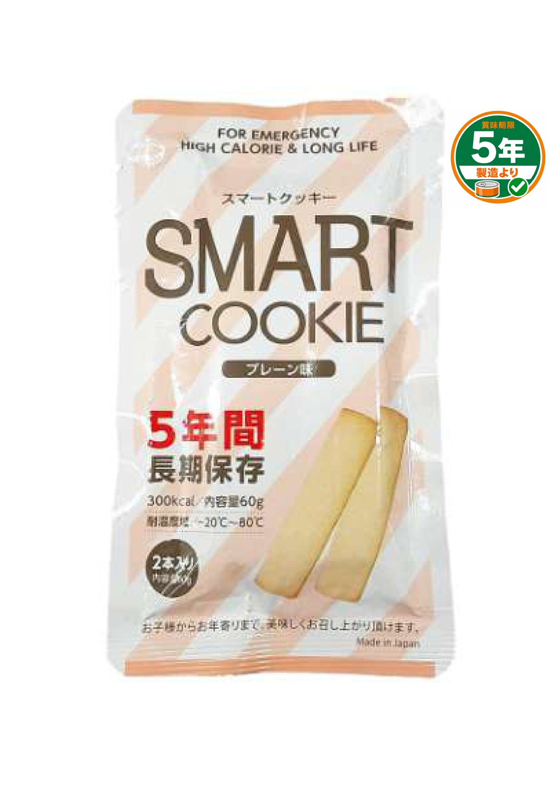 ●『スマートクッキープレーン』は、東京食品技術研究所によって、細菌数、大腸菌、酸価、過酸化物価の検査が行われた保存食品です。