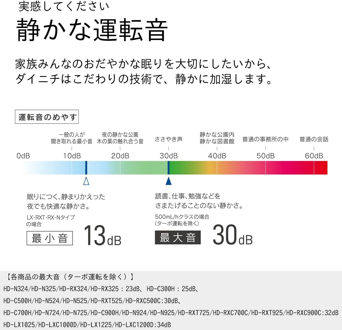 - 【音が静か】静かなお部屋を静かに加湿します。運転音最大・最小:標準=25・15dB、静音=18・15dB、eco=25、15dB ※運転音最小は、湿度50%設定時のみ