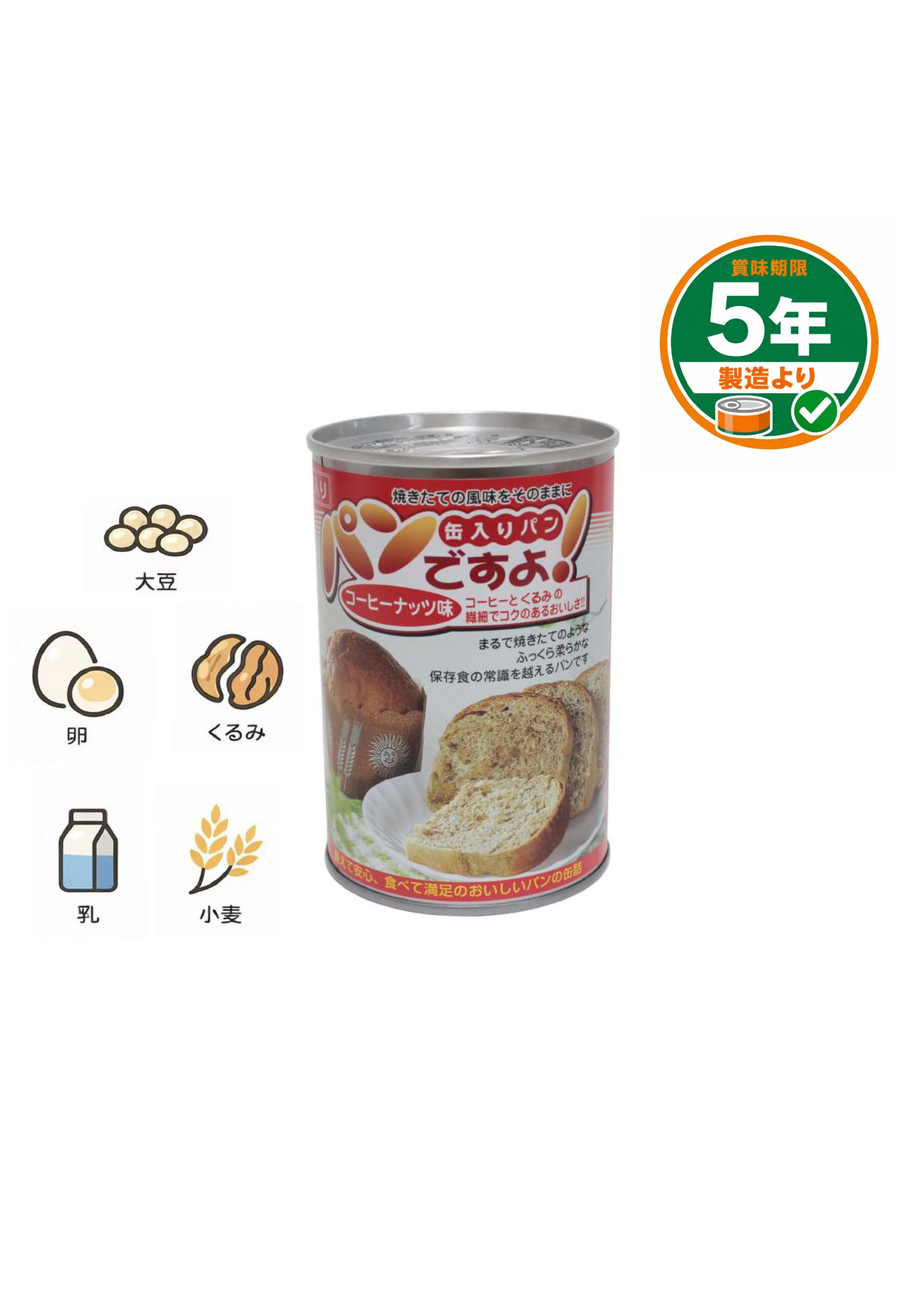 小麦粉(国内製造)、マーガリン、砂糖、くるみ、オレンジピール(洋酒、水飴)、卵、イースト、コーヒー、小麦たん白、食塩 / トレハロース、乳化剤(大豆由来)、香料、着色料(カロテン)、酸化防止剤(V.E)