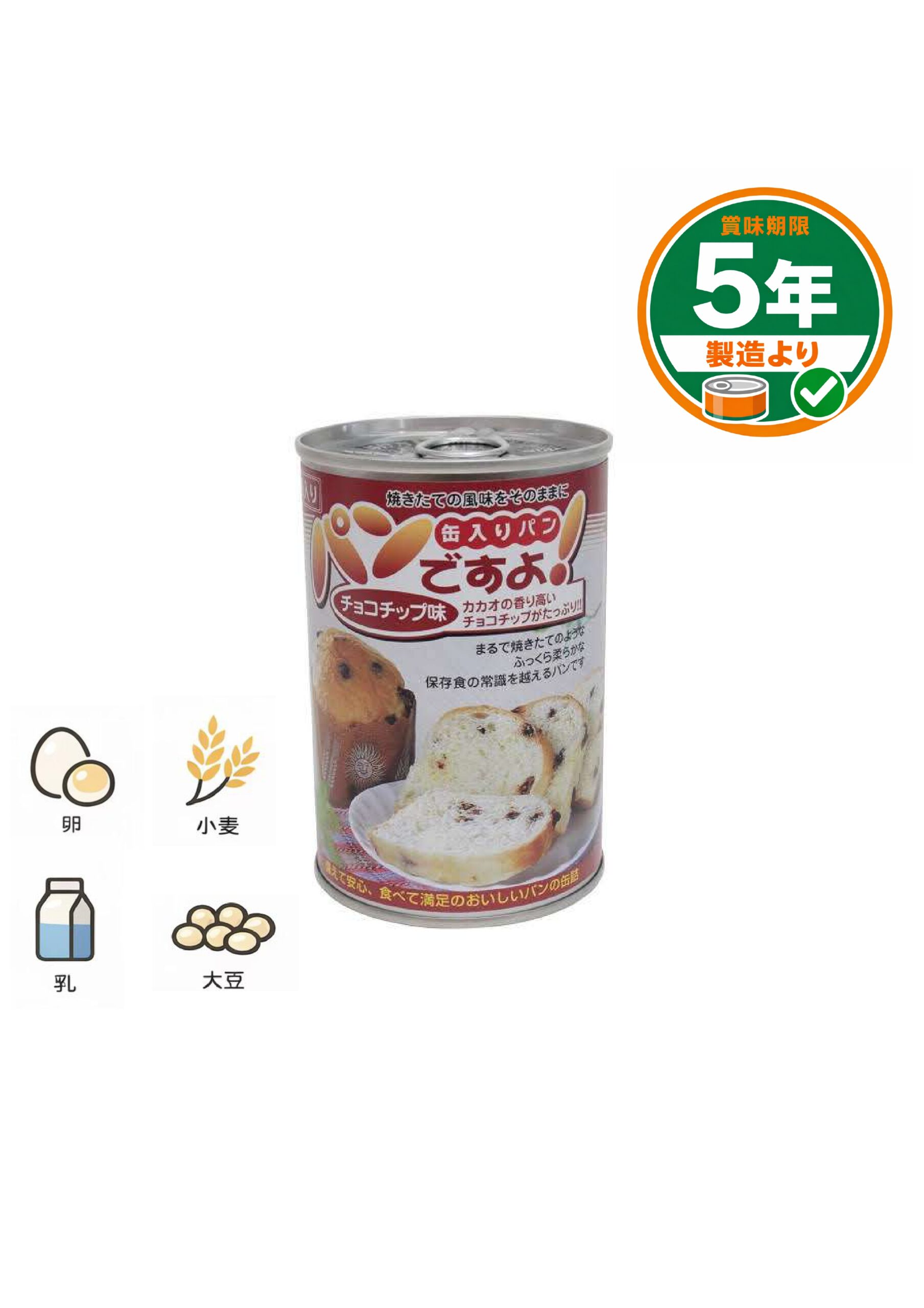 小麦粉(国内製造)、チョコチップ(砂糖、植物油脂、ココアパウダー)、マーガリン、砂糖、卵、イースト、小麦たん白、食塩 / トレハロース、乳化剤(大豆由来)、香料、着色料(カロテン)、酸化防止剤(V.E)
