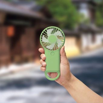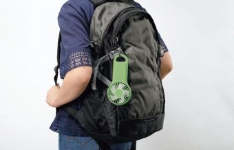 どこにいても、心地よい風を。取り扱いしやすいシンプルなカラビナを搭載。カラビナでバッグやベルトループに簡単装着。カチッとつけてLet’s Go!