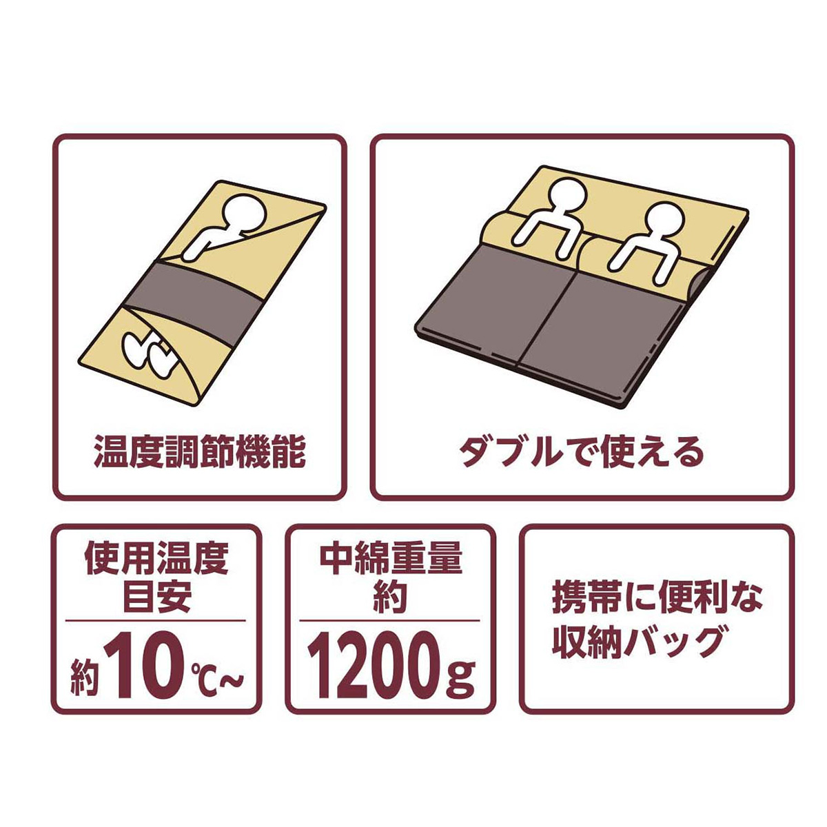 ワイド&ロングサイズ/軽くて保温力抜群/2WAYファスナー採用/温度調節も可能/同じシュラフをつなぎ合わせればダブルサイズにできます
