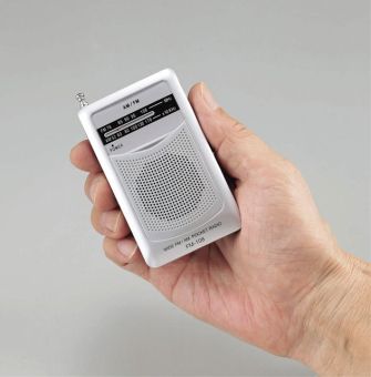ワイドFM対応!クリアな音質でスポーツ観戦から災害情報まで幅広い情報に対応、手のひらサイズで携帯に便利。スピーカーでもイヤホンでも聴く事ができます。両耳イヤホン付。クリップ付きでベルトに装着可能!