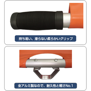 布担架は他でも販売していますが、布は汚れやしみが付き易く、腐敗する場合もありますので、折りたたみ担架に最適なPVC使用です。