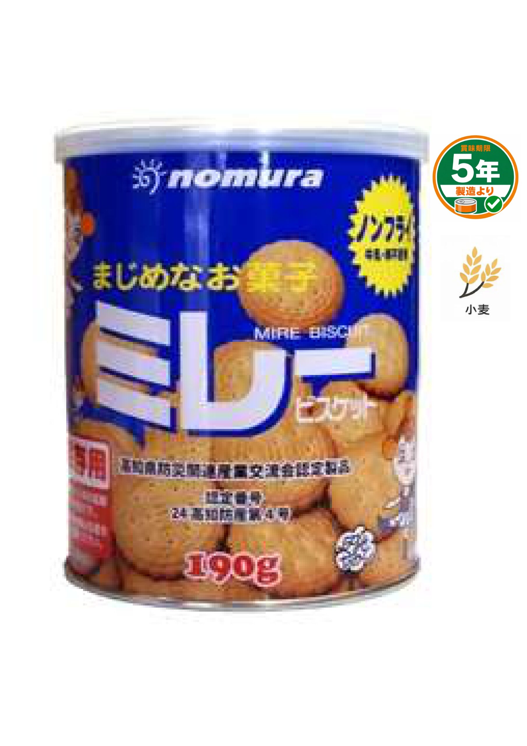 製造より5年間保存できるミレービスケットです。通常のミレービスケットとは異なり油で揚げておらず、又塩もかけておりません。その為、固くなく、やさしい味になっており、幼児からお年寄りまで食べて頂けるおいしい非常食です。原材料に牛乳、卵、バターを使用しておりません。