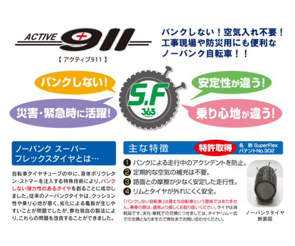 | 仕様 | ノーパンクタイヤ・折畳みフレーム・折畳みハンドル・6段変速 |