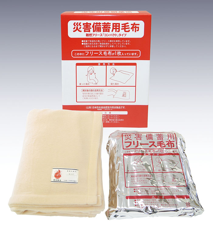 難燃加工をした防炎協会認定ラベル付きのフリース毛布です。