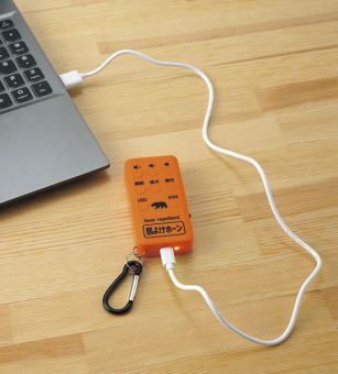 LEDライト付き熊よけ携帯・発音器/3種類の音/作動時間4~12時間/充電時間約2時間/カラビナ付