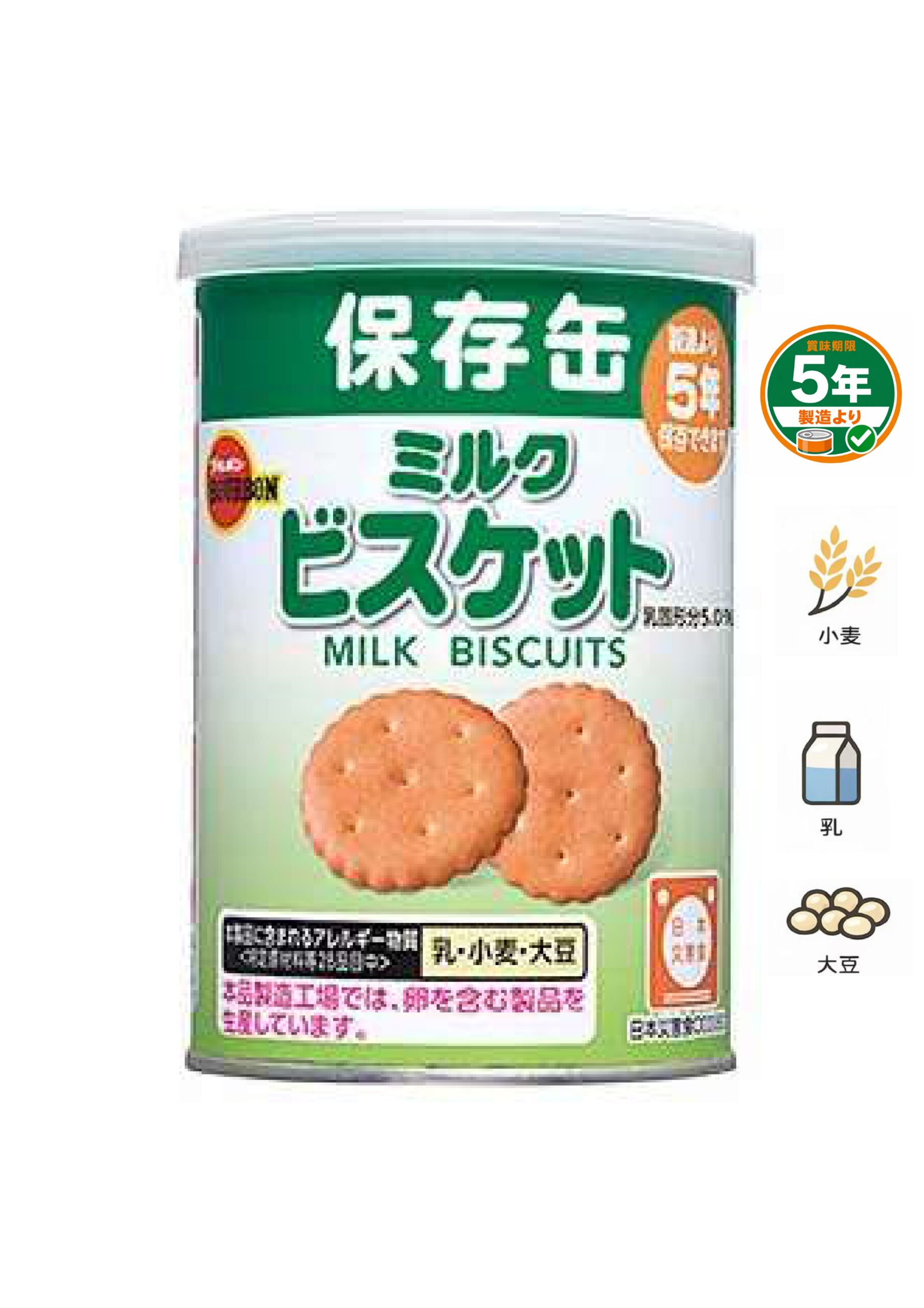 あっさりとした塩味の素朴な味わいのクラッカーです。コンパクトサイズの金属缶を使用し、フタは簡単に開封できるプルトップ式で、再封に便利なキャップ付きになっています。日頃の災害への備えに最適です。