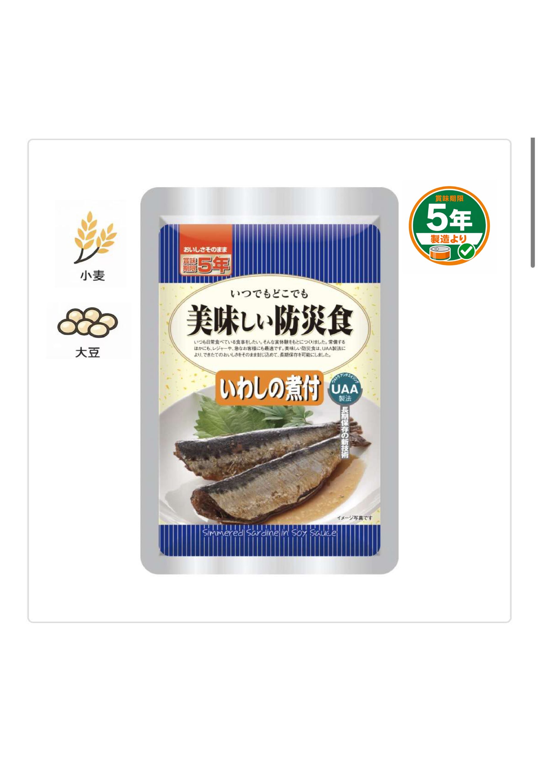 生姜を効かせたシンプルな味付けでじっくり煮込んだいわしが、常温で5年7ヶ月保存可能な防災食です。