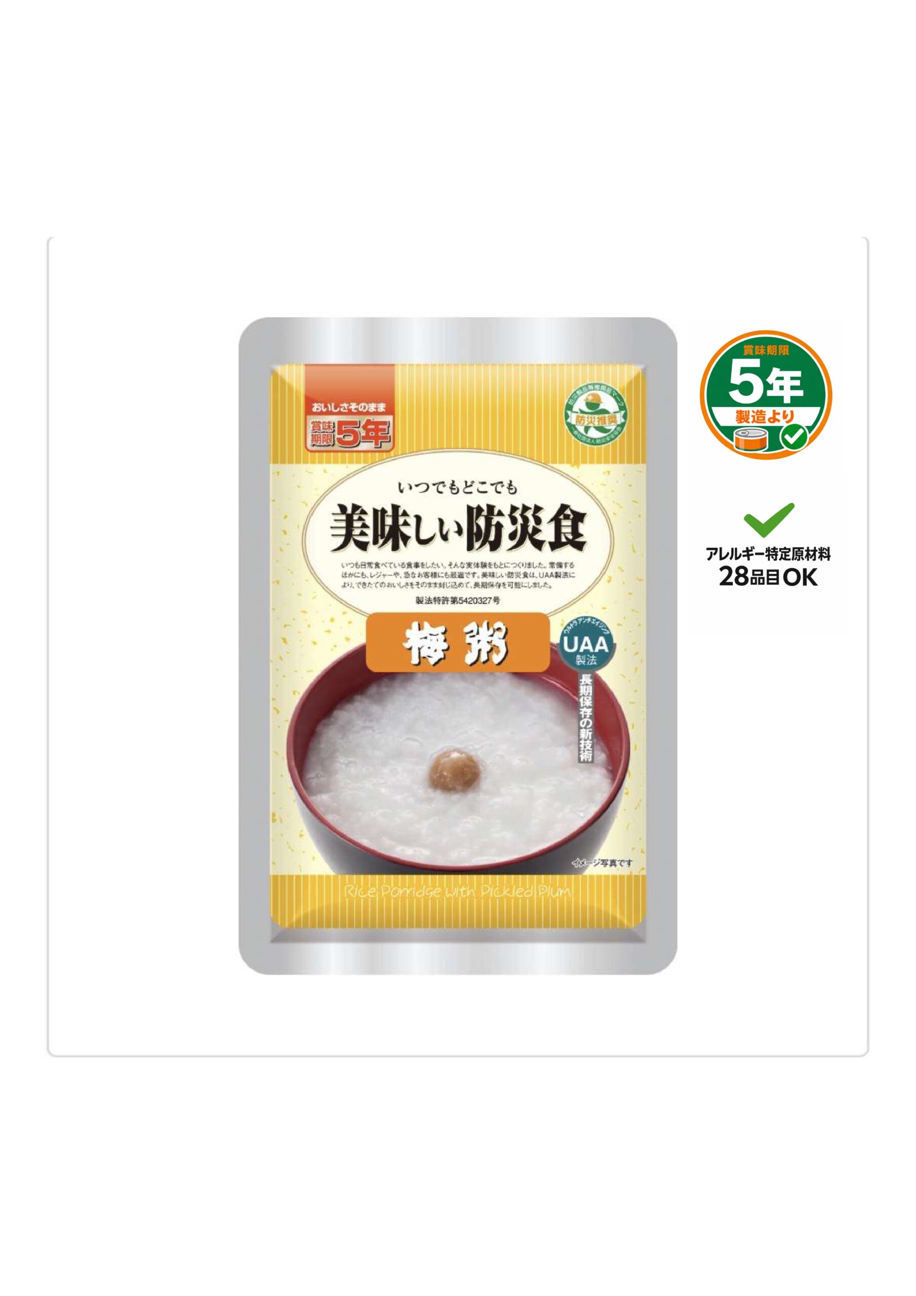 梅の酸味と香りが広がる風味豊かなお粥が”常温で5年7ヶ月保存可能”な防災食に。