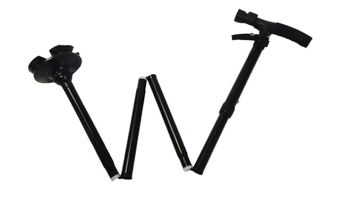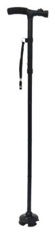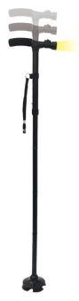 折りたたみ式で軽量。5段階の長さ調節が可能。LEDライトで安心。4脚タイプの回転軸ヘッド。手を離しても倒れない自立式。