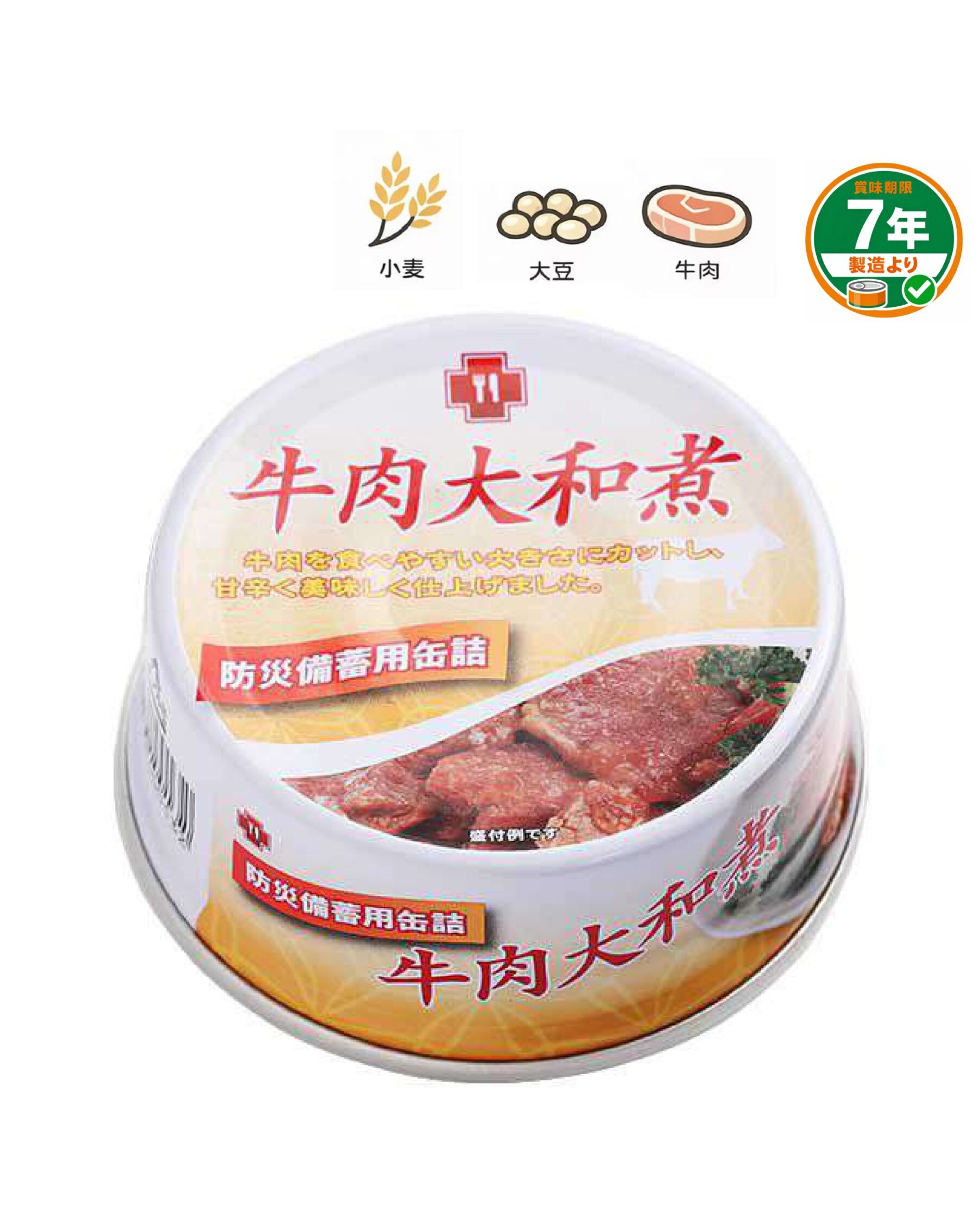 7年保存のお惣菜缶です。牛肉を食べやすい大きさにカットし、甘辛く美味しく仕上げました。 温めなくてもどこでもおいしくお召し上がりいただけます。食品自主衛生管理認定工場(HACCP)で製造しております。真空加圧製法(加熱滅菌処理)による抜群の安全性、耐食性に優れた2ピース型オールアルミ缶を採用し、内容物の酸化を抑制しております。