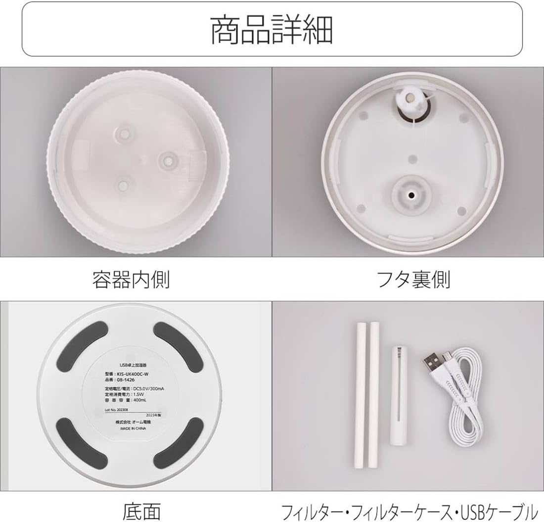[商品名] USB卓上加湿器 ホワイト|KIS-UK400C-W 08-1426