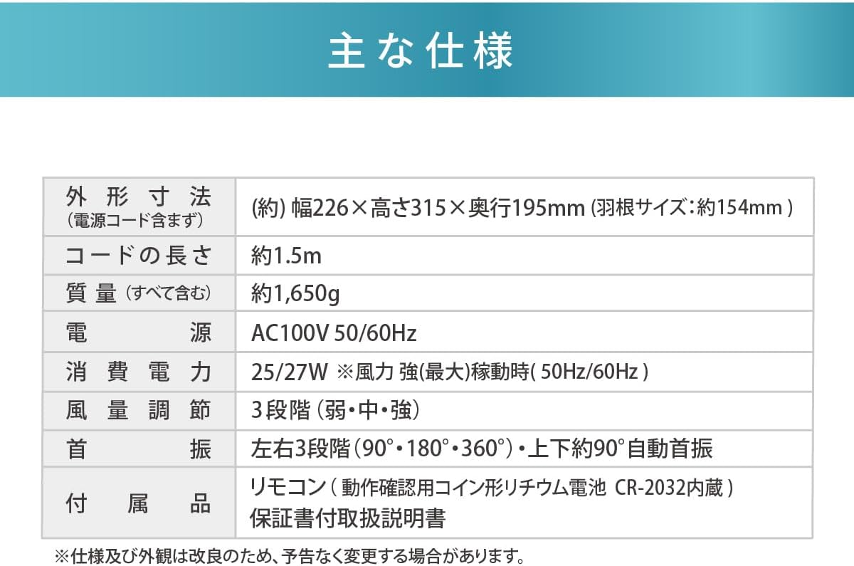 ■ 外形寸法(電源コード含まず):(約)幅226×高さ315×奥行195mm(羽根サイズ…約154mm)