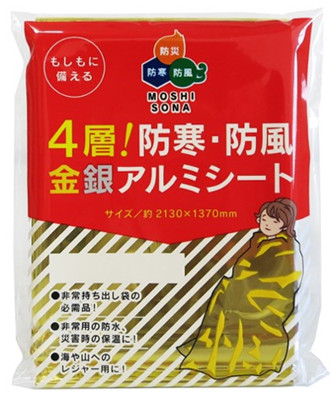 ※寒冷時は熱(太陽光)を吸収しやすい金色を表面に、炎天下では熱を反射しやすい銀色を表面にしてご使用ください。