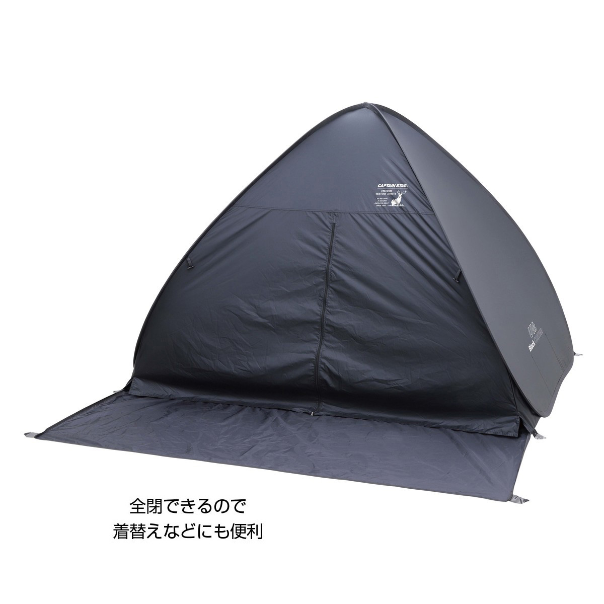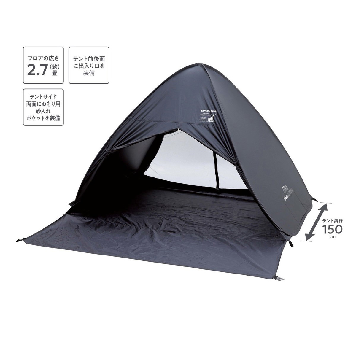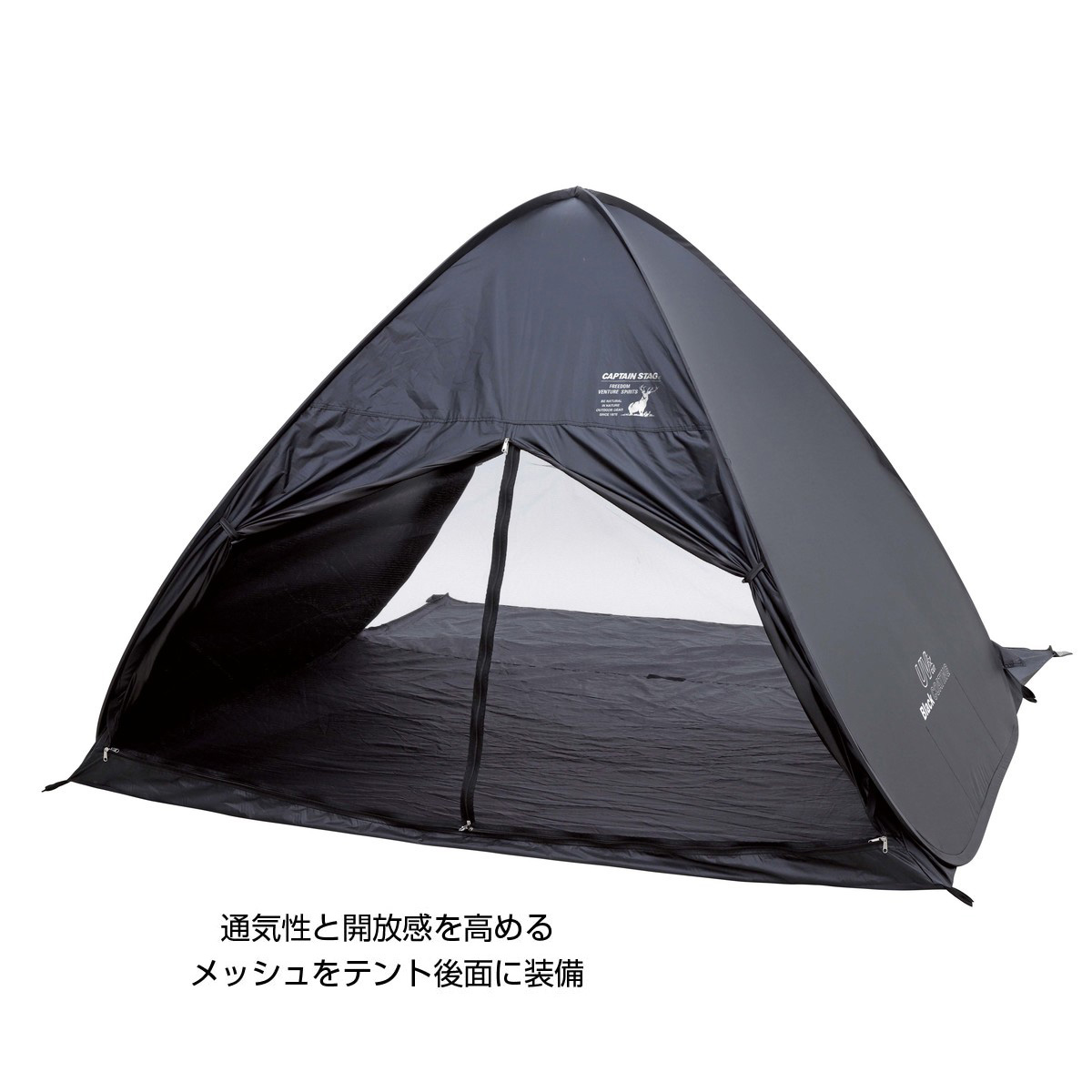 テントは前後面から出入りができ、後面には通気性と開放感のあるメッシュパネルを装備し、閉じる事もできます。