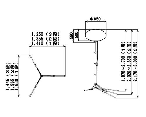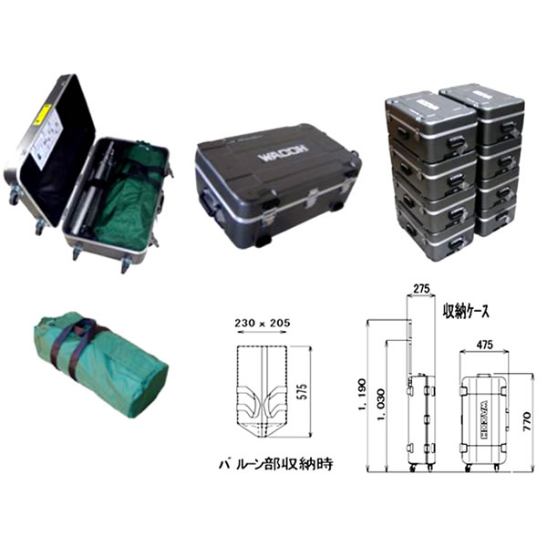 | 質量 | 三脚・ポール:7.8? バルーン部:8.2kg コード付きスイッチ:1.4? 収納ケース:7.2? |